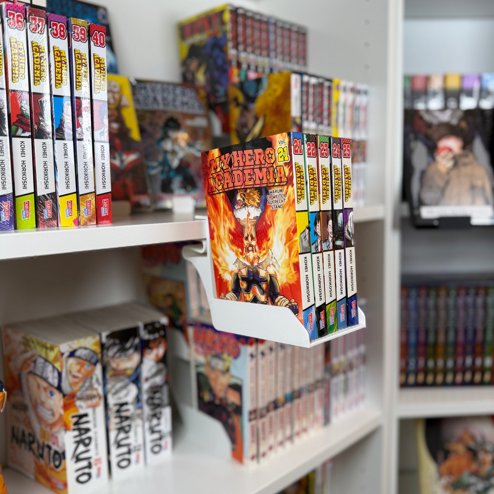 Maximize your shelf space and showcase your favorite manga, comics, and books like never before with the MG Tana. Combining the secure clamping action of the MG Shelf Clamp with the practical elevation of the MG Raiser, this innovative accessory attaches easily to the front edge of your shelf, creating a second row for your collection.
